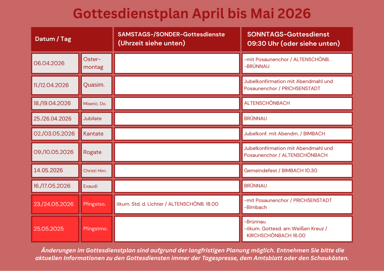 Um die Veranstaltungs- & Gottesdienstplakate zu vergrößern, klicken Sie sie bitte an.